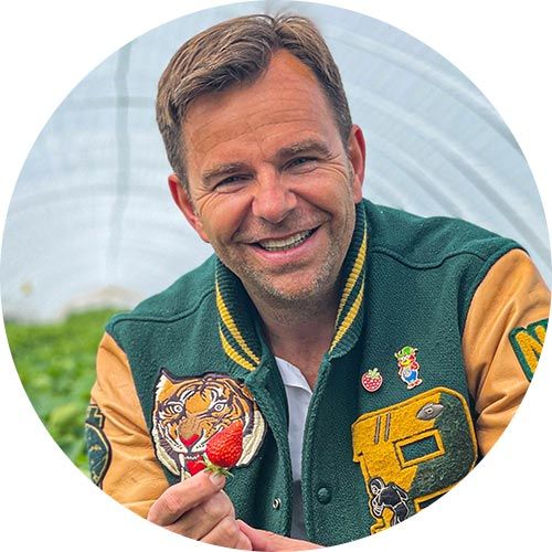 Robert Dahl ist leidenschaftlicher Erdbeerbauer und kreativer Unternehmer. Aufgewachsen auf dem Erdbeerhof seines Vaters bei Lübeck, startete er 1993 mit unstillbarer Neugier seinen eigenen Betrieb nahe Rostock. Aus einem kleinen Familienhof hat er eine der außergewöhnlichsten Freizeitmarken Deutschlands geschaffen: Karls Erlebnis-Dörfer mit inzwischen sieben Standorten.